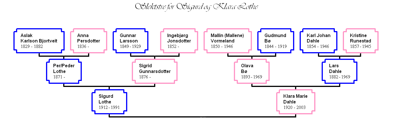 Under ser du et begrenset slektstre for Sigurd og Klara.